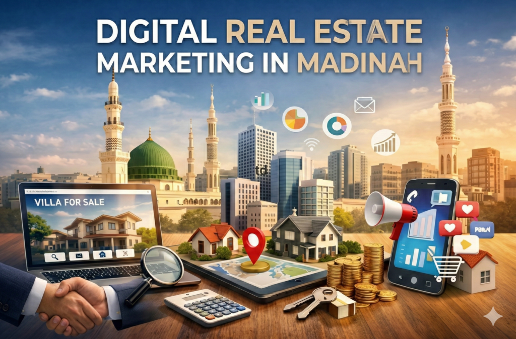 Real estate digital marketing in Madinah has become a fundamental element for the success of any real estate company or agency seeking to reach its target audience and achieve higher sales and leasing rates. With the rapid shift in digital behavior across Saudi Arabia, relying solely on traditional marketing methods is no longer sufficient. Digital real estate marketing is now the main driver of growth for property projects in Madinah.