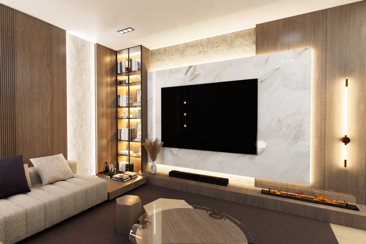 طراز مودرن عصري يجمع بين البساطة والأناقة، مع واجهات زجاجية تضفي إضاءة طبيعية وإطلالة راقية بأجواء فندقية هادئة.